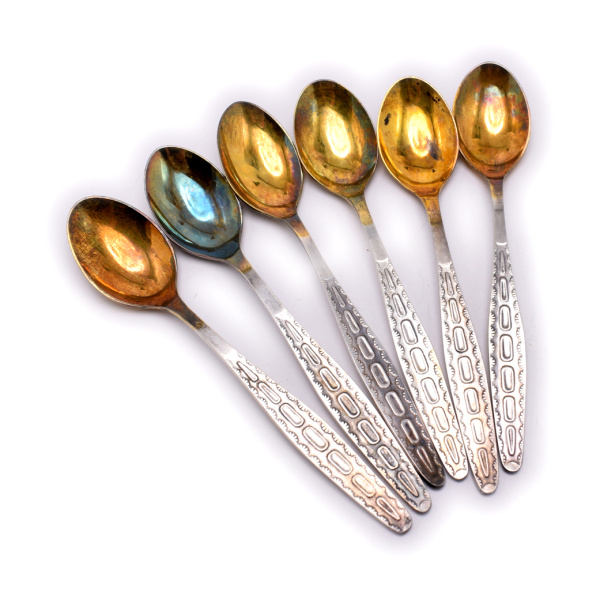 Лот чайных ложек. 6 шт. Мельхиор. МНЦ. Золочение. 2,5×14 см 1975−1980 1975-1980