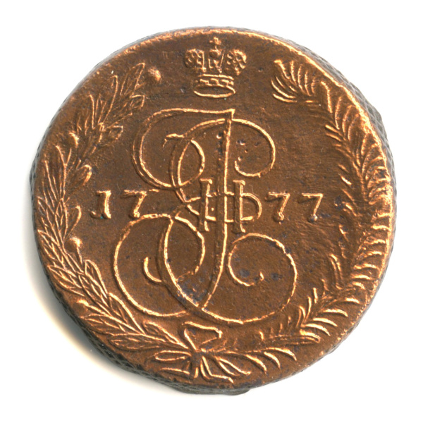 5 копеек — Вензель императрицы Екатерины II Великой. Орел 1768 г. Екатеринбург 1777 ЕМ (Российская Империя)