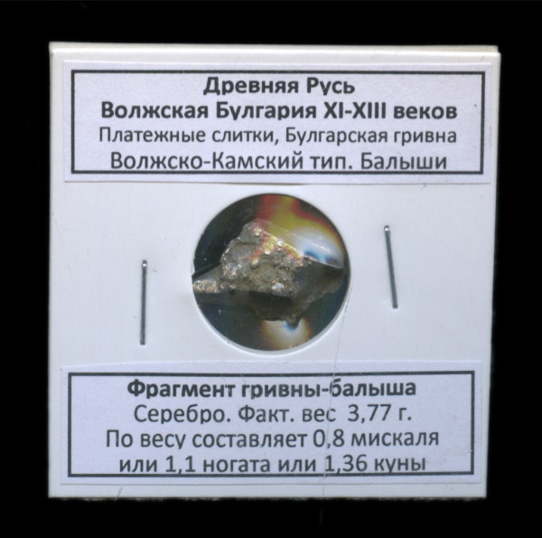 Фрагмент гривны-балыша. В холдере. Древняя Русь Волжская Булгария XI—XIII вв.еков, Платежные слитки, Булгарская гривна, Вожско-Камский тип. Балыши, се…