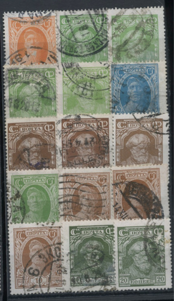 Лот почтовых марок. 1927 г. Стандартный выпуск. Разновидности. Номиналом 1коп. — 20коп. Гашёные. Отличное состояние. 15 шт 1927г (СССР)
