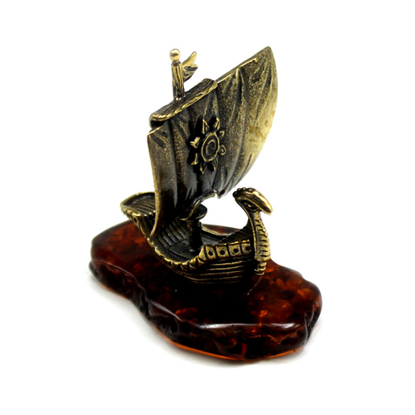 Фигурка «Ладья под парусником». бронза, янтарь. 22,2 г. 4,5×5 см