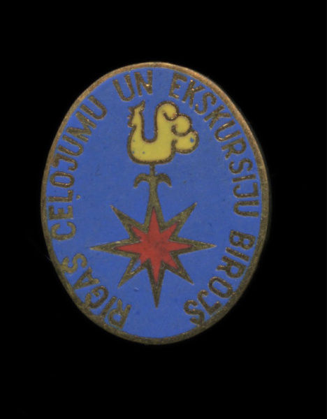 Знак «Рижское бюро путешествий и экскурсий». Крепление: булавка. Тяжелый, эмаль (СССР)