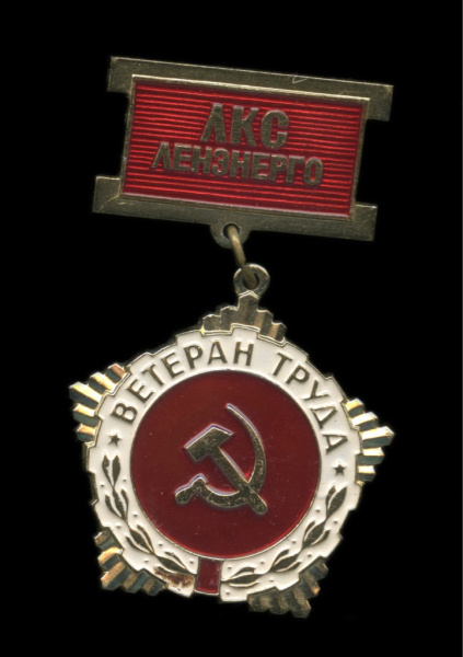 Знак «ЛКС Ленэнерго. Ветеран труда». ЛМД. Крепление: булавка. Легкий, эмаль (СССР)