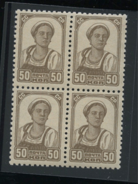Квартблок чистый, без наклеек и следов. Стандартный выпуск 1937 г. Загорский 459, без В.З. Перф. греб. 12:12 ¼. К. Ц 1100×4 (СССР)