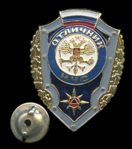Знак «Отличник МЧС». Крепление: винт. Тяжелый, эмаль (Россия)