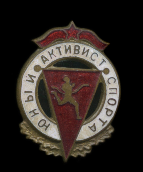 Знак «Юный активист спорта». Крепление: булавка. Тяжелый, эмаль (СССР)