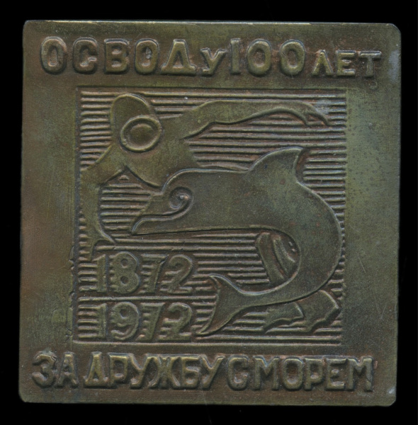 Плакета ОСВОДУ 100 лет. За дружбу с морем. 8,5×8,5 см (СССР)
