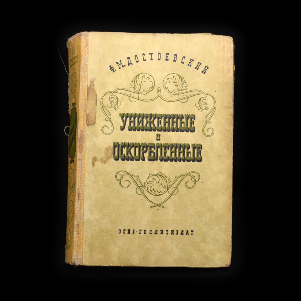 Книга «Униженные и оскорбленные». Издательство «ОГИЗ — Гослитиздат». Автор: Ф.М. Достоевский. 445 стр. Тираж 100 000 экз 1946