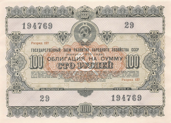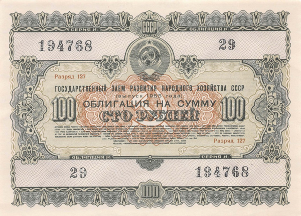 100 рублей — Облигация. 1 номер 1955 - (СССР)