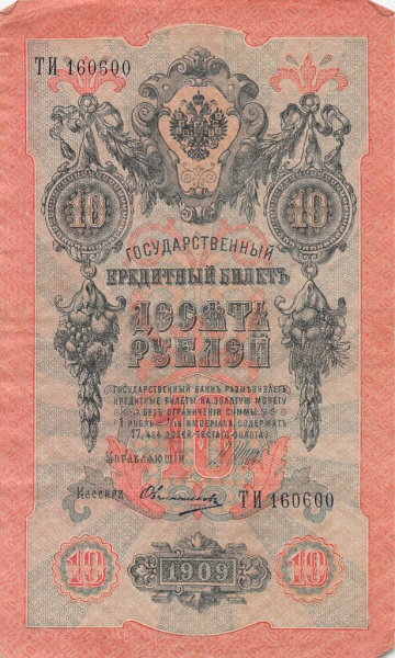 10 рублей — упр. Шипов. Овчинников 1909 - (Российская Империя)