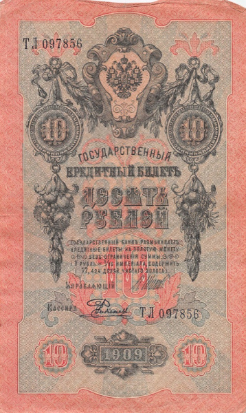 10 рублей — упр. Шипов. Родионов 1909 - (Российская Империя)