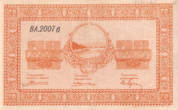 20 рублей Приморская, Амурская и Сахалинская Области. 1917. Печать в Токио. Коллекция Г. и Я. Абезгузов (Россия: Гражданская война)