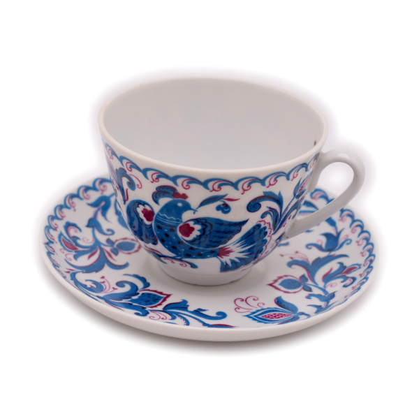 Чайная пара «Жар-птица». Фарфор. ЛФЗ. Размер 9×7 см. ⌀ 14,5 см (СССР)