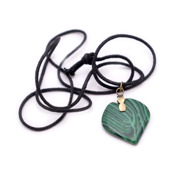 Кулон в виде сердца из малахита. Длина 52 см. Размер 2×2