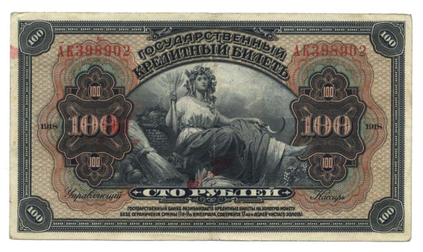 100 рублей — Временная Земская Власть Прибайкалья. Без подписей на аверсе 1918 (Россия: Гражданская война)