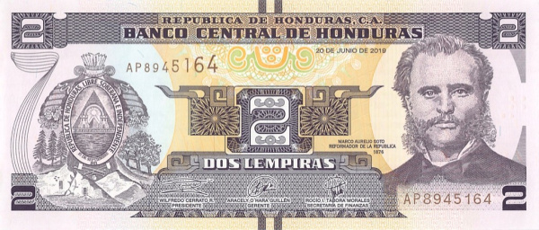 2 лемпиры (Pick: # 97) 2019 (Гондурас)
