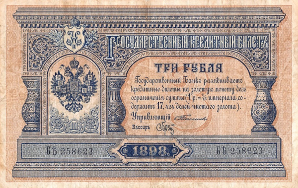 3 рубля 1898. Тимашев — Брут (Российская Империя)