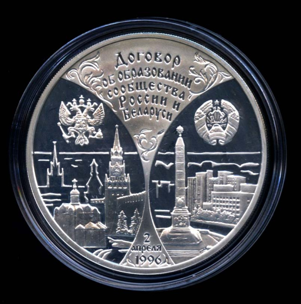 3 рубля — Первая годовщина договора об образовании сообщества России и Беларуси 1997 ММД (Россия)