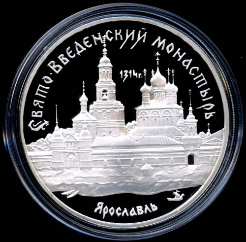 3 рубля — Свято-Введенский монастырь, г. Ярославль. В капсуле, с сертификатом. Банковская сохранность монеты 1997 ММД (Россия)