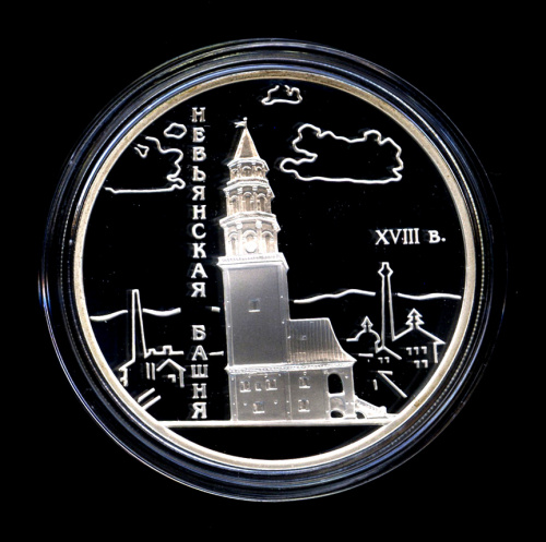 3 рубля — Невьянская наклонная башня (XVIII в.), Свердловская область — В капсуле, с сертификатом. Банковская сохранность монеты 2007 СПМД (Россия)