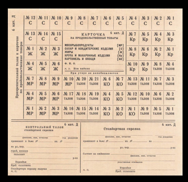 Талон на продовольственные товары спецснабжения «закрытых» городов. Категория № 6 Д. Печать Гознака, водяные знаки 1970-е 1970−е (СССР)
