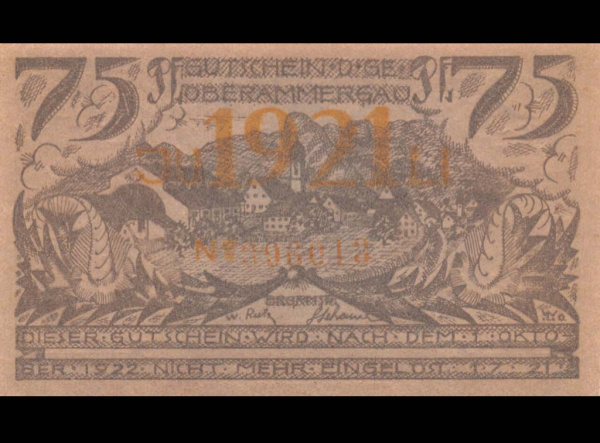 75 пфеннигов — Обераммергау 1922. Экземпляр из крупной коллекции мирового уровня (Германия (Нотгельды))