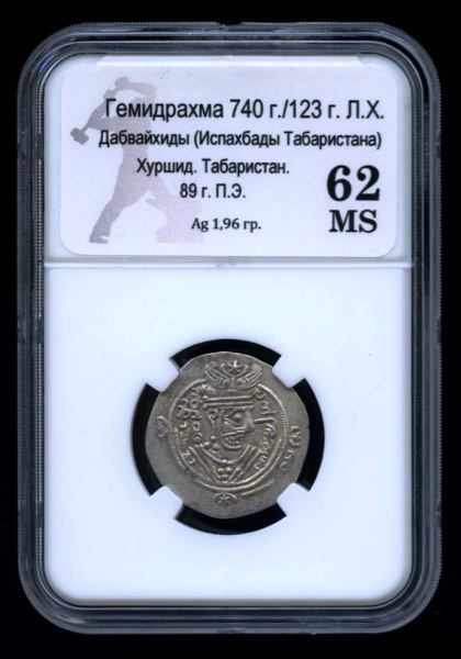 Гемидрахма. Табаристан. 740/123. В Слабе® MS 62