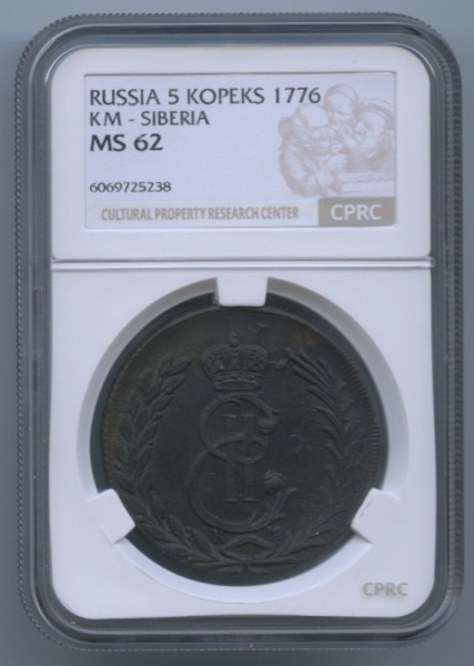 5 копеек — Сибирская монета 1776 КМ. В слабе. В слабе CPRC MS 62 (Российская Империя)