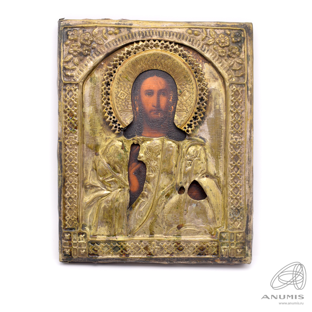 Икона Иисуса Христа Вседержителя (Пантократора) в окладе. Размер 18×22 см