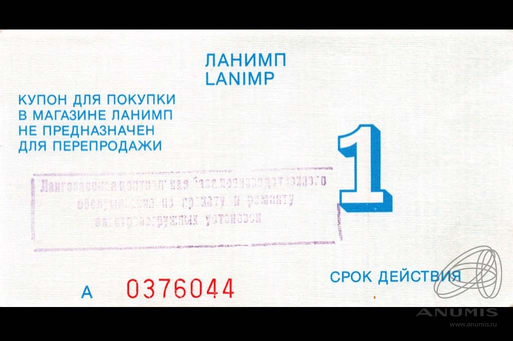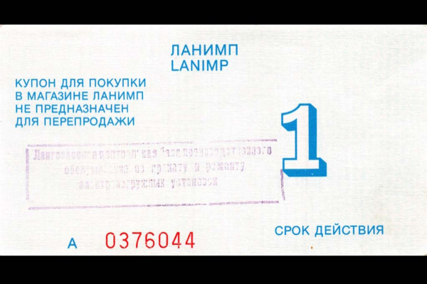 1 доллар — Купон на покупку товаров в магазине «Ланимп» г. Лангепас Ханты-Мансийский Автономный округ. Бона изготовлена на белой бумаге без водяных знаков, печатались в Финляндии. В момент выпуска купон был приравнен к доллару