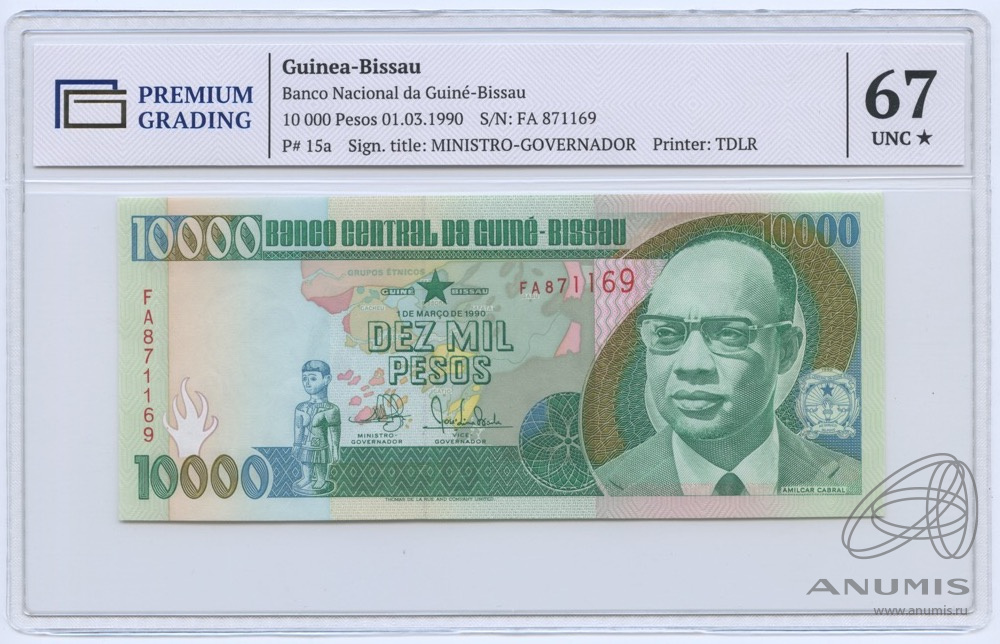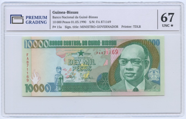 10000 песо (Pick: # 15) 1990. В слабе. В слабе PREMIUM GRADING 67 Unc