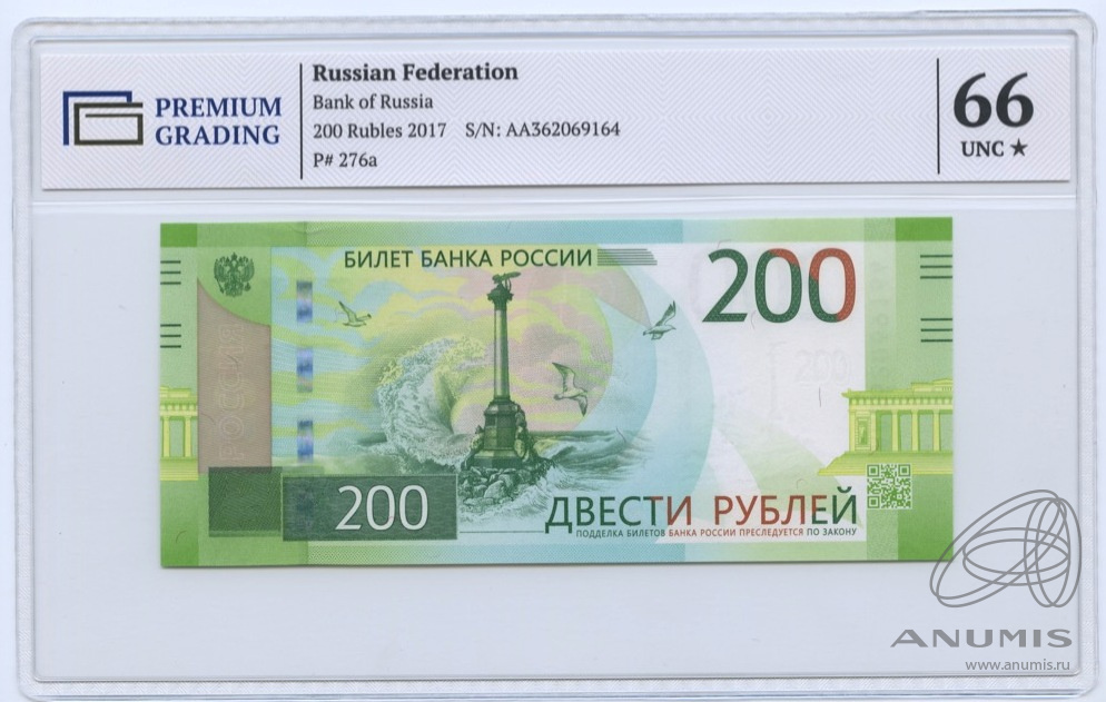 200 рублей (Pick: # 276) 2017. В слабе. В слабе PREMIUM GRADING 66 Unc