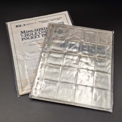 Листы MINGT для монет стандарта OPTIMA с клапаном, на 20 позиций. Материал ПЭТ, новые, в упаковке — 10 шт. Размер 257×202 мм