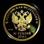 Юбилейная монета: 50 рублей 2014 года «Сочи 2014. Биатлон». XXII Олимпийские зимние игры и XI Паралимпийские зимние игры 2014 года в г. Сочи. Российская Федерация: Россия современная (1997 — 2020). Монетный двор: Санкт-Петербургский монетный Двор. Золото 999, 8 г, ø 23 мм, Гурт: Рубчатый. Тираж: до 20000 шт. Серия: XXII Олимпийские зимние игры и XI Паралимпийские зимние игры 2014 года в г. Сочи.
